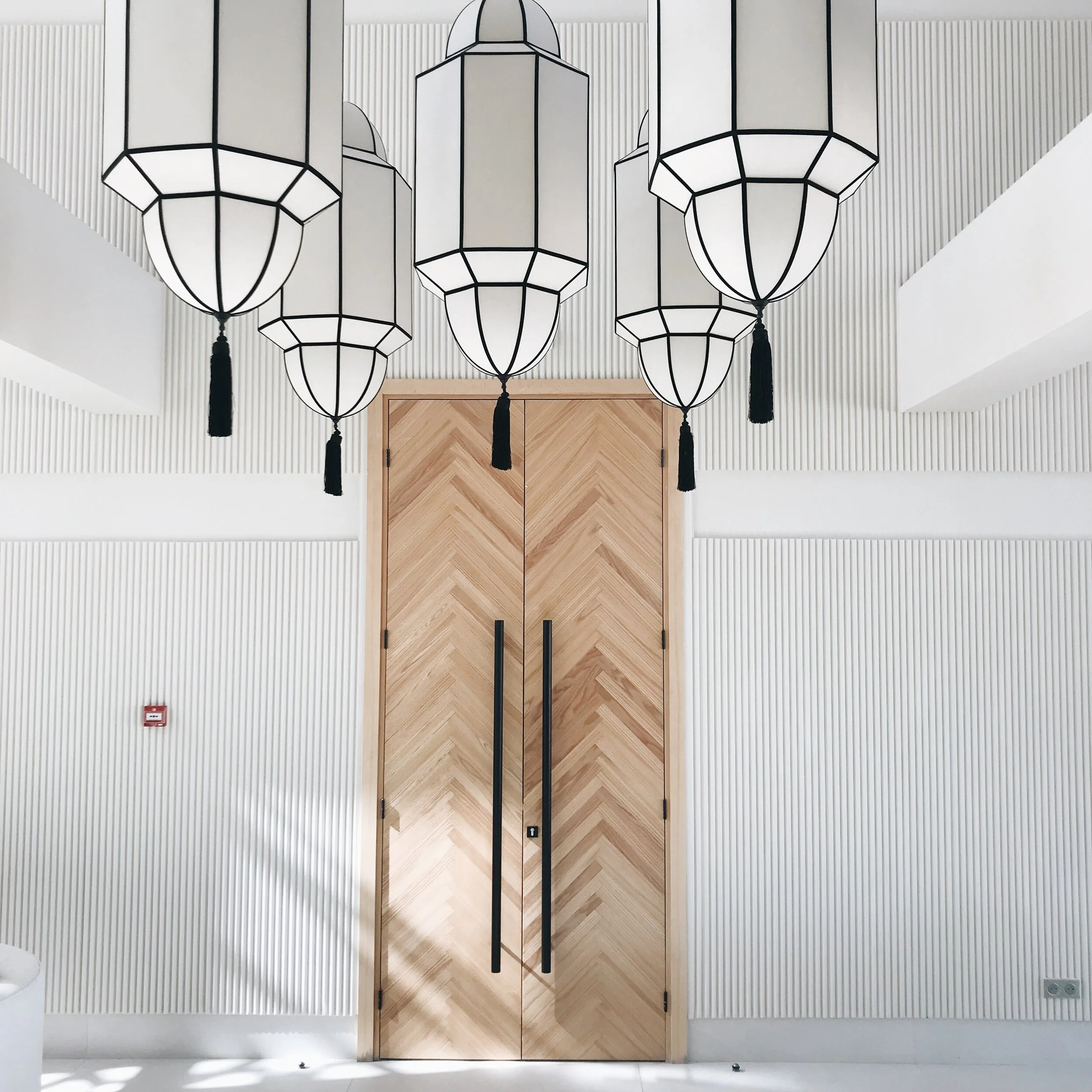 With this project we wanted to create a sophisticated yet warm . For the entrance we decided to put modern suspended lamps with a touch of Moroccan artisanal design. The entrance is spacious and illuminated.