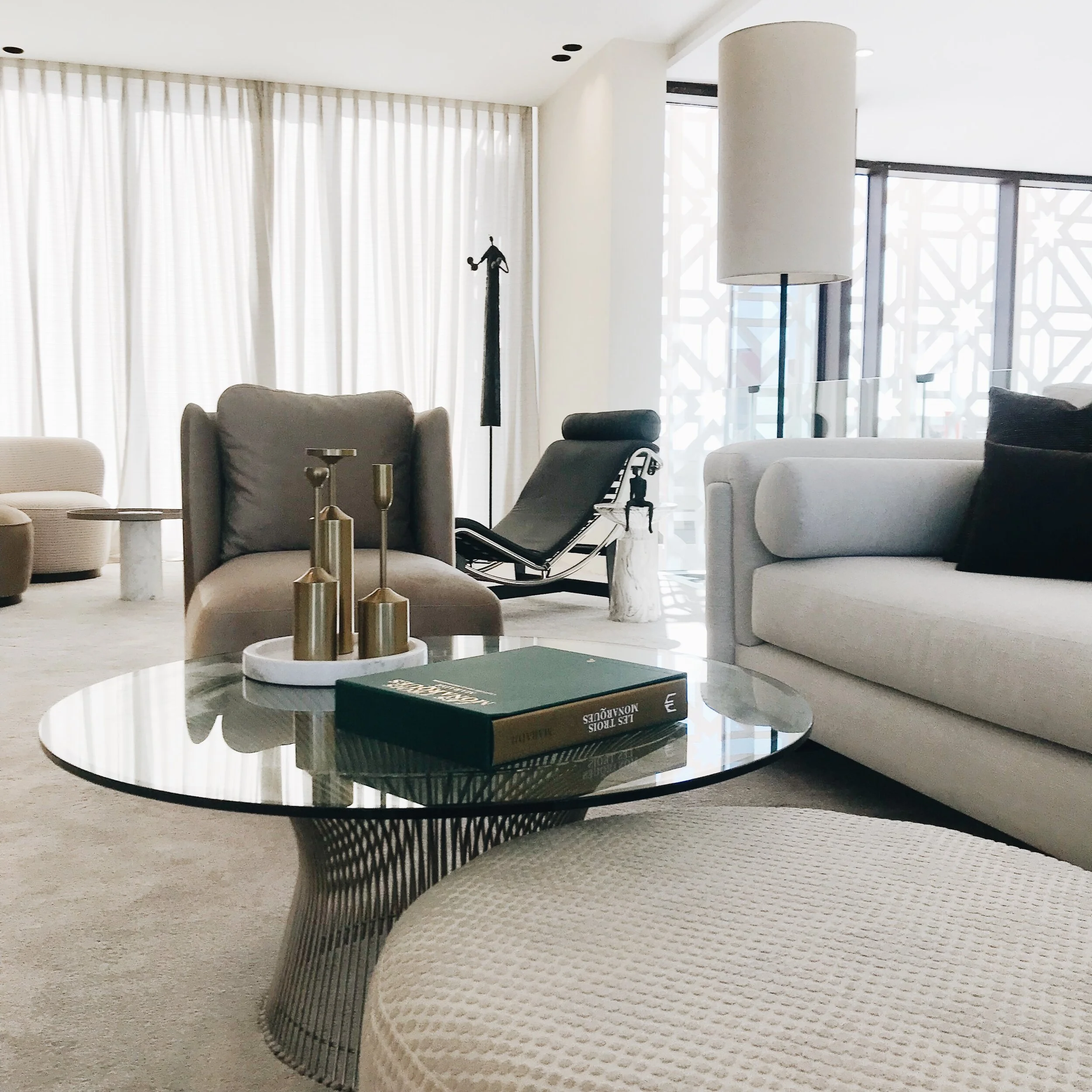 Details such as the iconic design Platner coffee table and an eclectic selection of fabrics and textures makes this calm space all about the subtilty of the details.