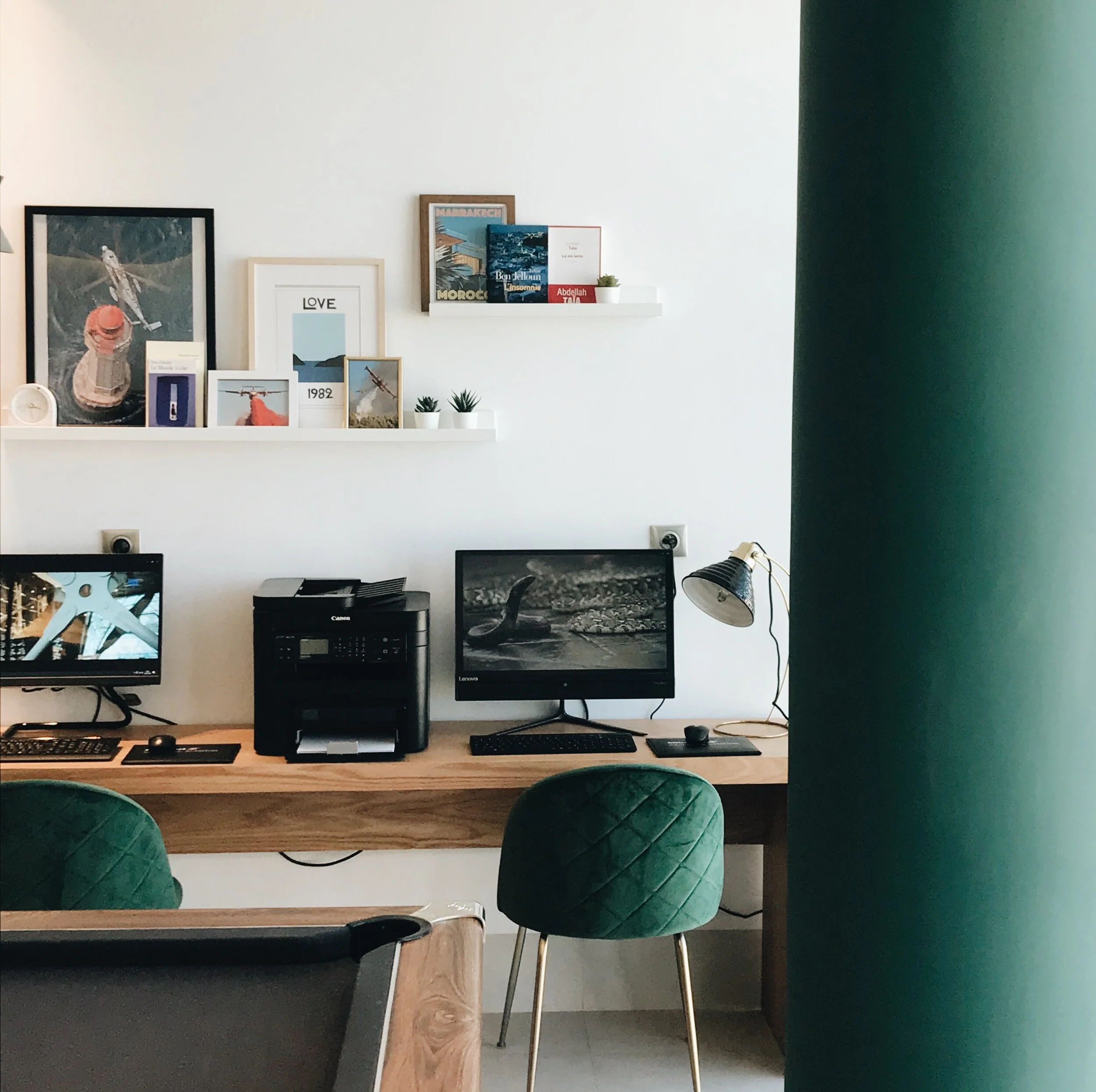 This home office interior design focuses on creating a functional, aesthetically pleasing, and ergonomically designed workspace that nurtures creativity and productivity while allowing you to strike a healthy balance between work and well-being within the comforts of your own home.