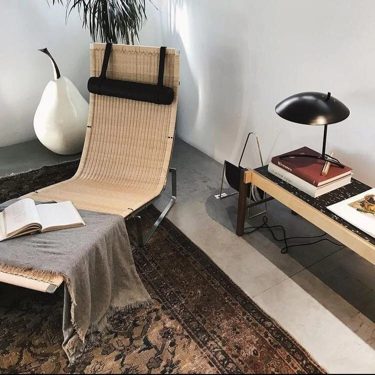 We used many iconic design models such as the famous Japanese coffee table Isamu Noguchi and a beautiful vintage Persian rug.